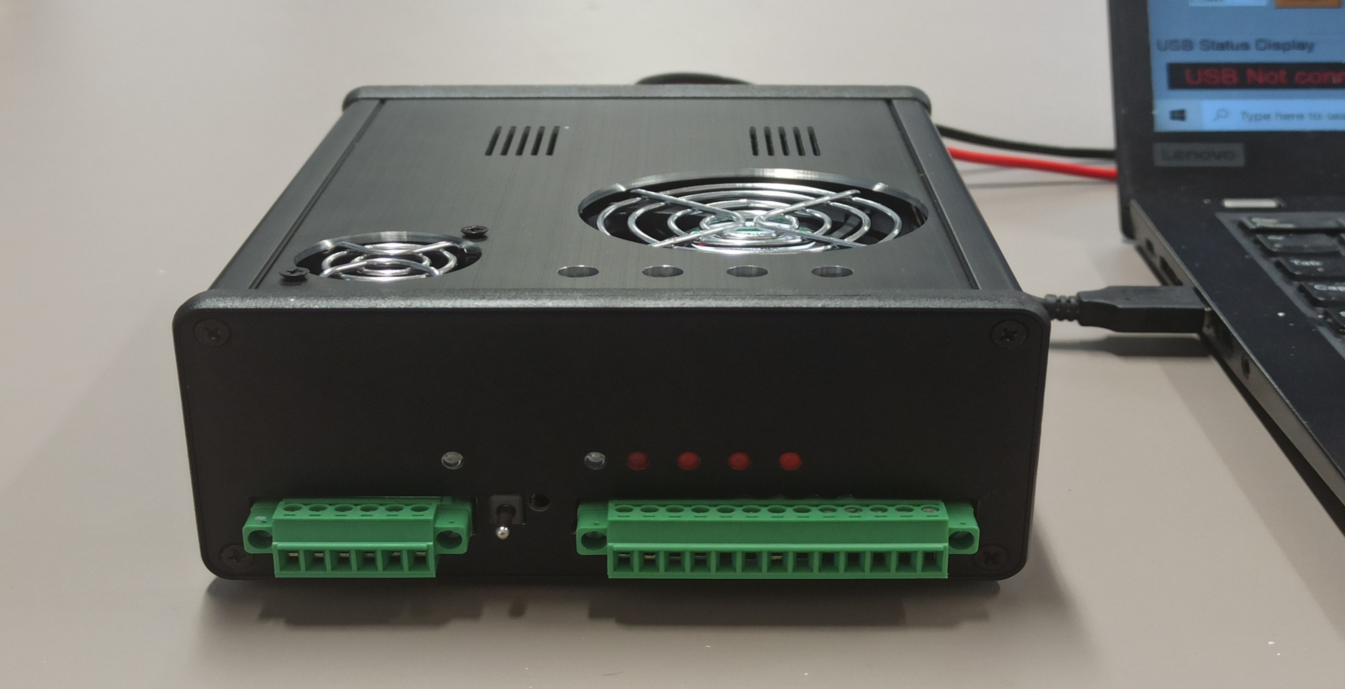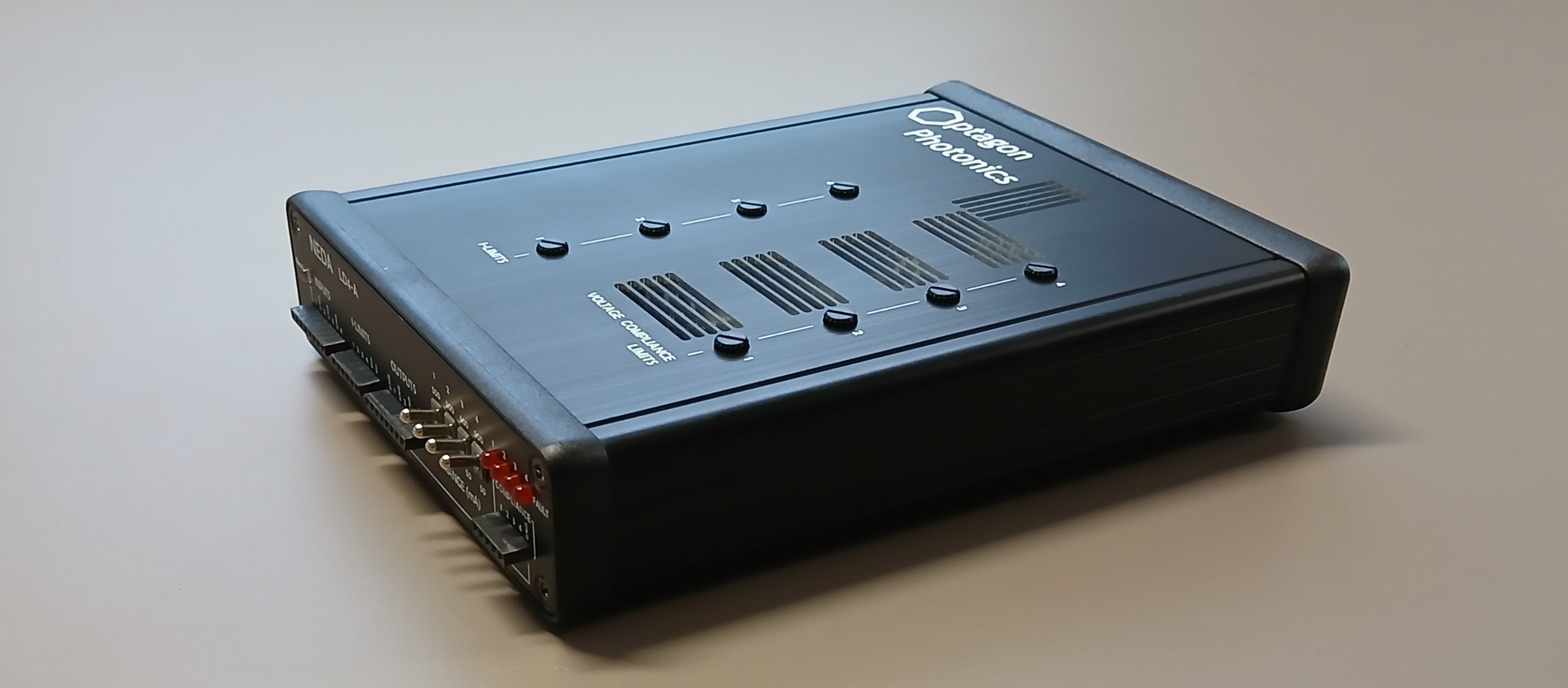 NEDA LD4Τ is our 4-channel control unit for active elements such as laser diodes, superluminescent diodes and semiconductor optical amplifiers, and for low resistance heating electrodes. It is based on our NEDA LT4-A driving engine to provide up to 4 V compliance voltage and up to 500 mA output current per channel. Compared to NEDA LT4-A, it additionally includes all required digital and mixed-signal elements for autonomous operation, and a TEC controller for the thermal control of a standalone optoelectronic load or a PIC. It is connected to the user equipment (laptop/desktop) via a USB connection, and offers a Python-based GUI for real-time control of the 4 driving channels and the TEC.